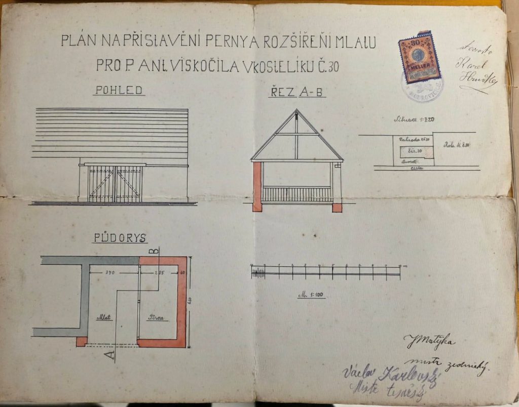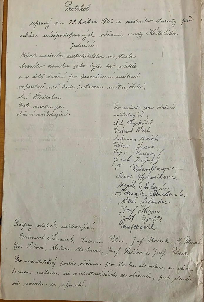 Aleš Opatrný připravil v hasičárně v Kostelíku výstavu starých dokumentů z Kostelíka. Můžete si prohlédnout dokumenty, které se týkají výstavby vodovodu, plánů na stavbu stavby některých domů, fotky z Kostelíka a další zajímavosti z Kostelíku. Tady je jenom několik dokumentů, které nafotil Milan Let, ale další obrázky a dokumenty uvidíte na této výstavě.